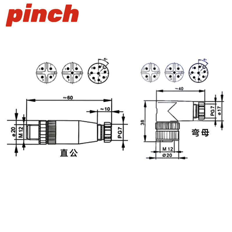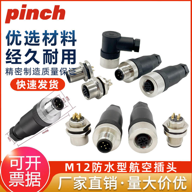 Conector Circular Pinch M12 de 4 Pines, Hembra, Impermeable, para Sensor, con Montaje de Brida