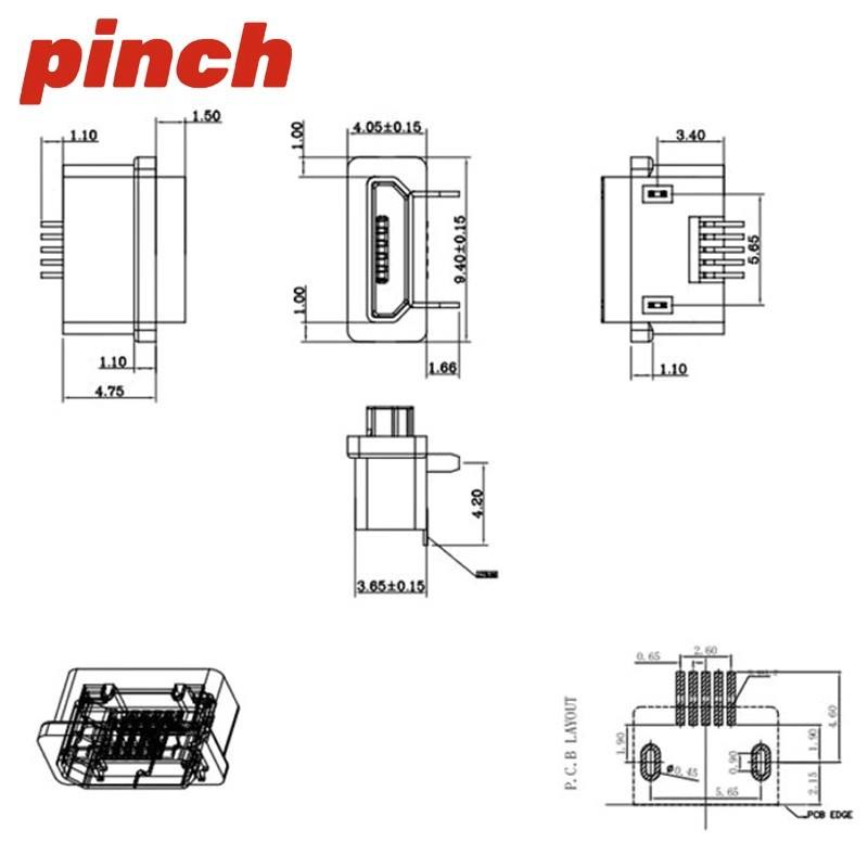 Conector Hembra Micro USB Tipo B de 5 Pines, Resistente al Agua, para Montaje en PCB