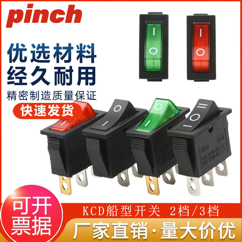 Interruptor basculante KCD3 de 3 pines y 2 posiciones con luz roja de 16A para dispensador de agua