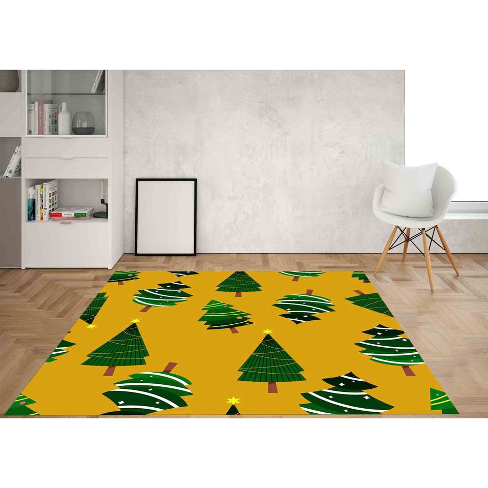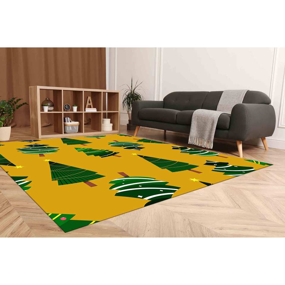 Alfombra con diseño de árbol de pino: decoración navideña moderna, antideslizante, con alfombra suave de pelo largo