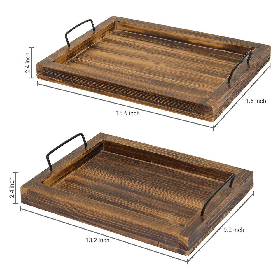 Juegos de bandejas rústicas de madera de pino con asas de metal negro Bandeja de madera ecológica para hoteles Restaurantes Bandeja de suministro para uso