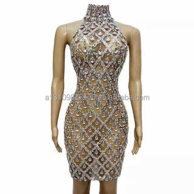 Vestido con diamantes de imitación de cuerpo completo para fiesta, fiesta, banquete, club nocturno, Bar, cantante, espectáculo