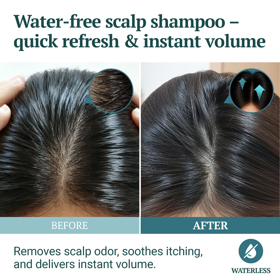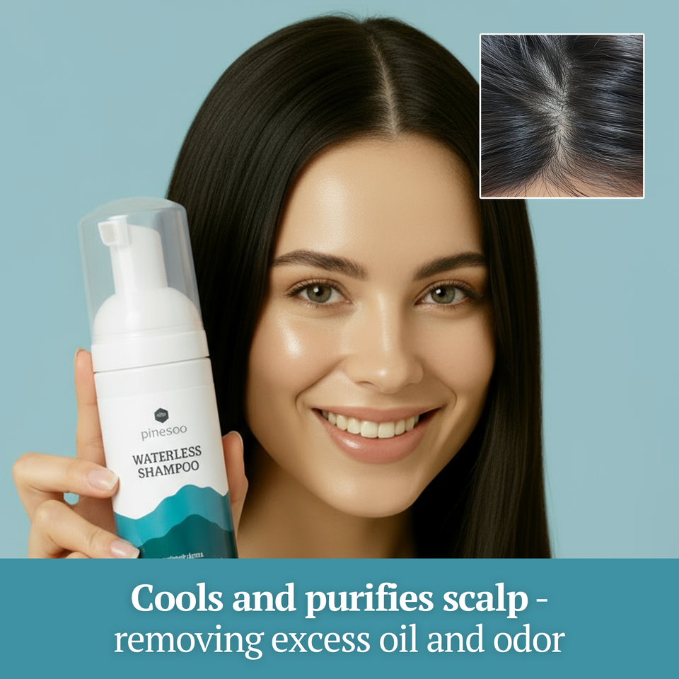 Champú Refrescante para el Cuero Cabelludo sin Agua Pinesoo Korean Volumizer 50ml, Cabello Seco, Cuero Cabelludo Sensible, pH Equilibrado, Impresión Láser, Portátil