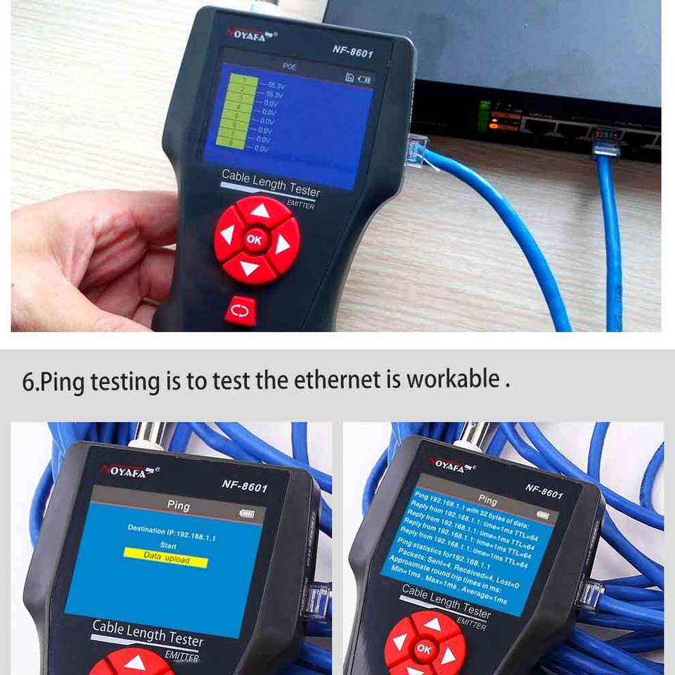 Toner de Red Multitarea Ping Test & PoE NF-8601W con Prueba de Velocidad Ethernet