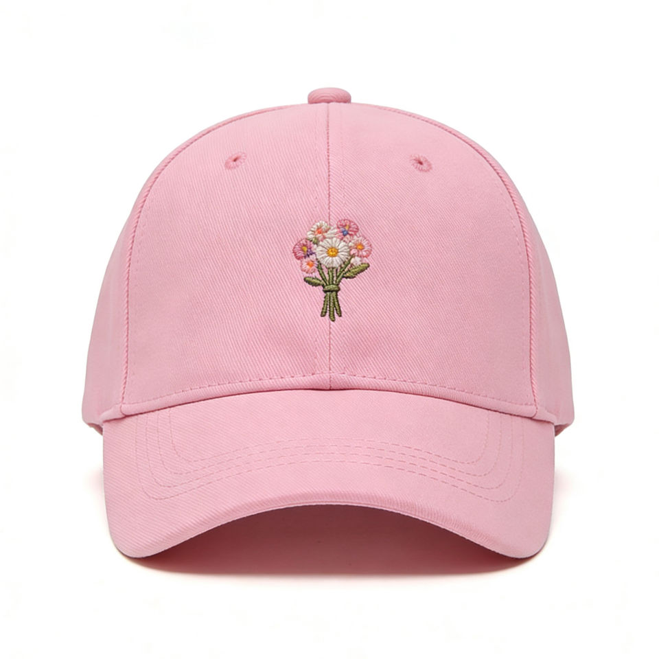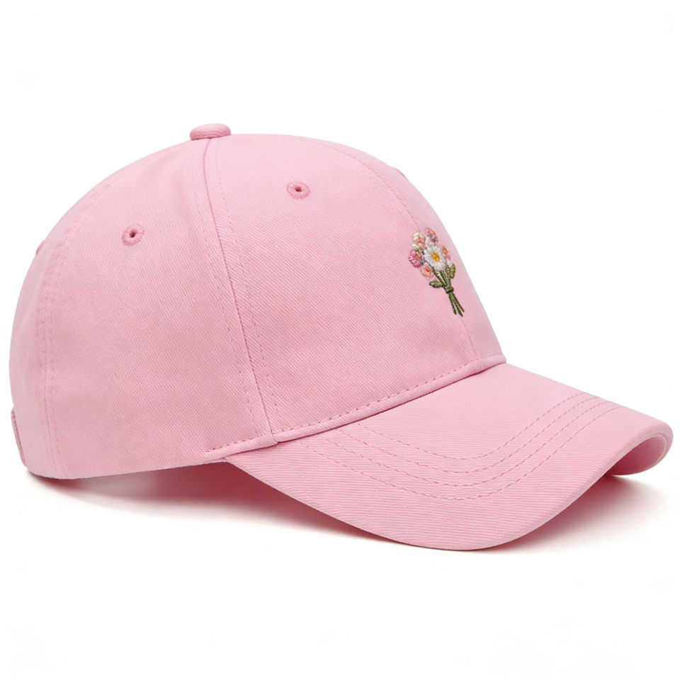 Gorra de béisbol rosa de 6 paneles con ramo de flores bordado – Sombrero para el sol ligero y transpirable para deportes al aire libre