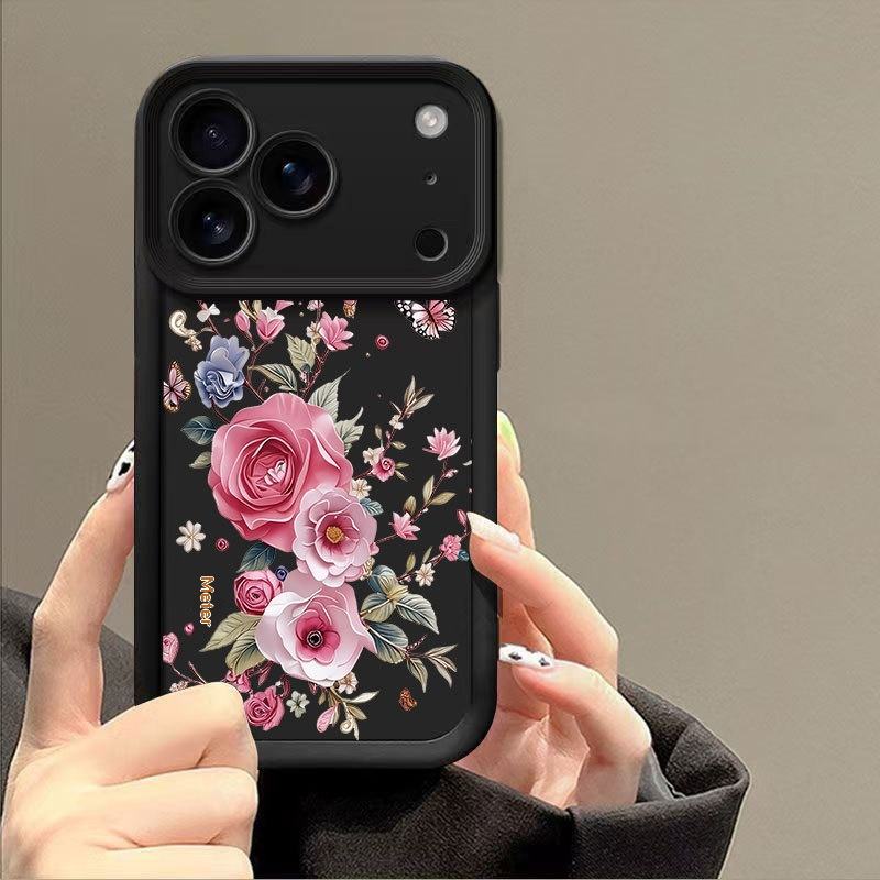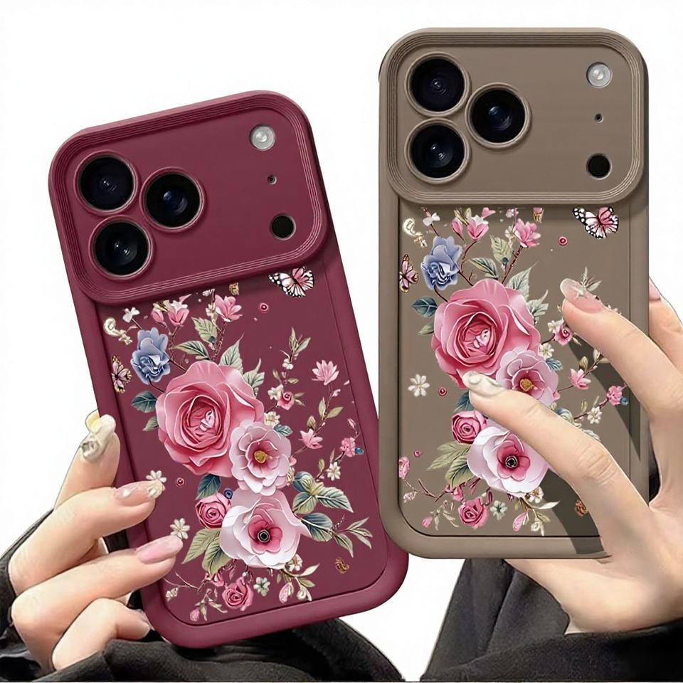 Funda de Teléfono Pintada a Prueba de Golpes con Diseño Floral de Animales Rosas para 17/14 Pro Max/16 Pro/13/15 para Chicas