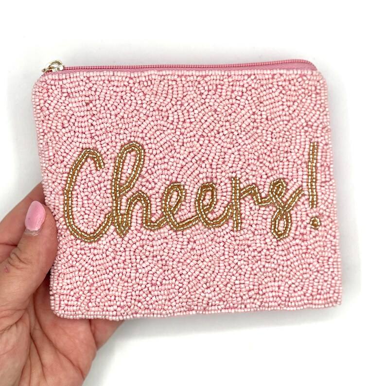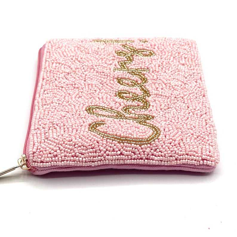 Monedero con cuentas rosa: ¡Saludos! Bolsa pequeña con cremallera