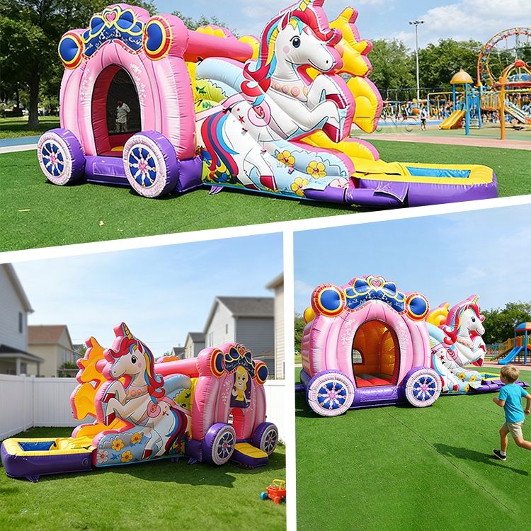 Castillo Inflable Rosa de Buena Calidad, Brincolín Inflable de PVC de 0.55mm con Soplador