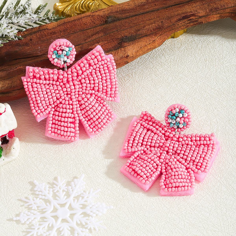 Pendientes de lazo rosa sin cuentas, ligeros, estilo bohemio, hechos a mano, bonitos y elegantes, para mujer, regalo de Navidad para fiestas.