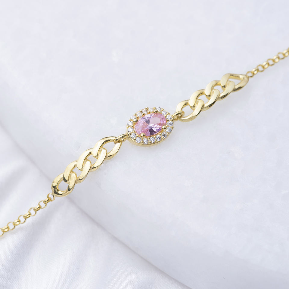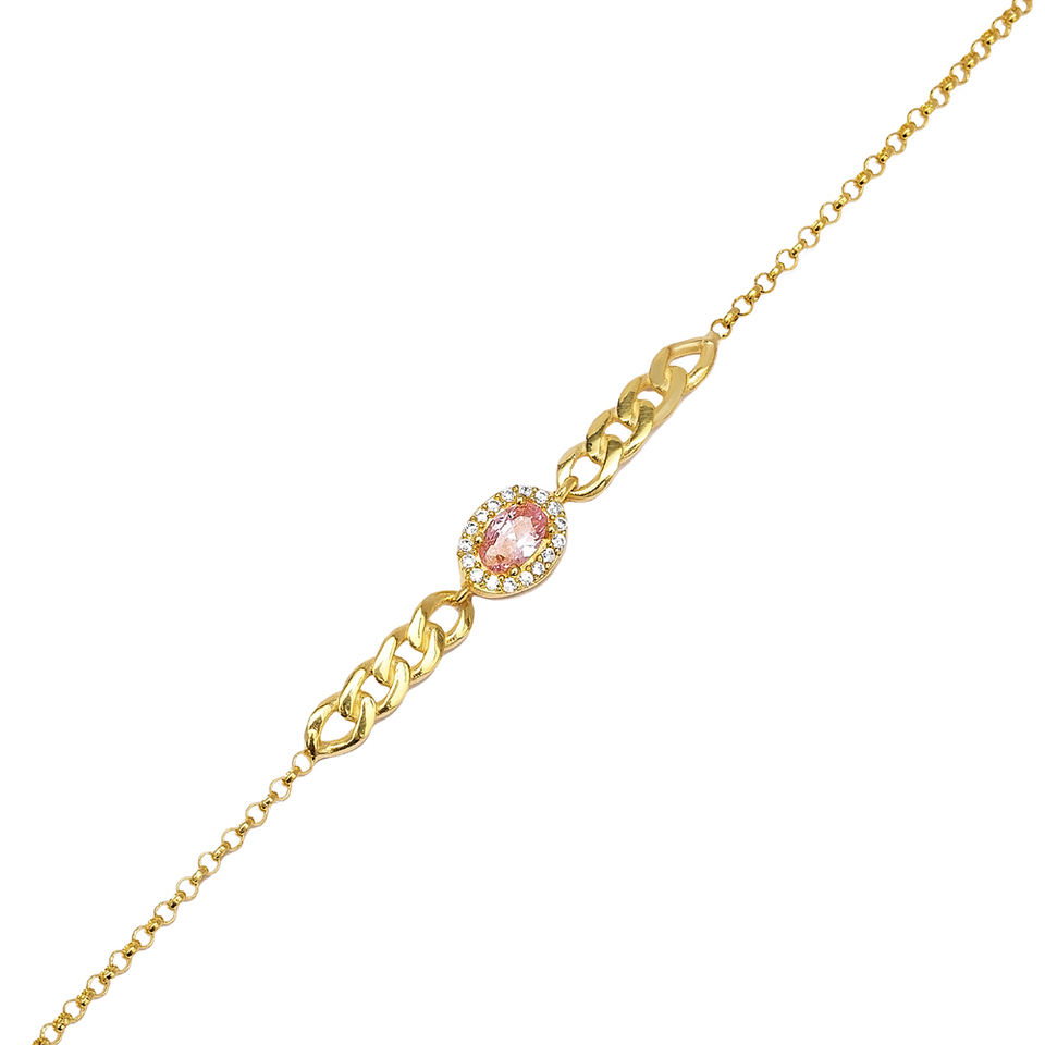 Rosa CZ piedra forma ovalada diseño encanto pulsera turco hecho a mano al por mayor 925 joyería de plata esterlina