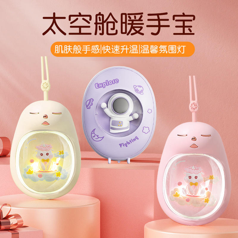 Calentador de manos con diseño de gato rosa, portátil, mini, recargable por USB, con luz de siete colores para uso en clima frío