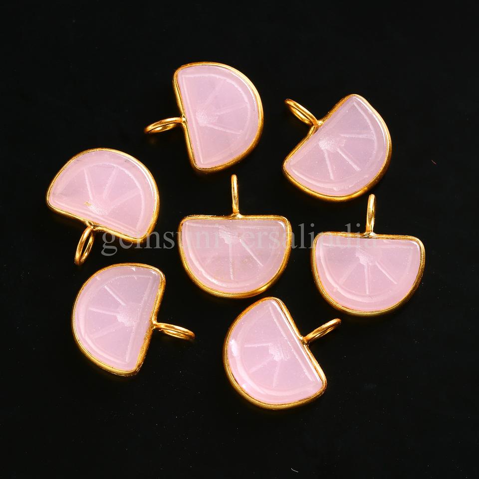 Colgante de Calcedonia Rosa Tallado en Forma de Fruta Naranja, Colgante de Piedra Preciosa con Baño de Oro Vermeil, Amuleto de Cristal Curativo, Joyería de Plata de Ley de 14 mm