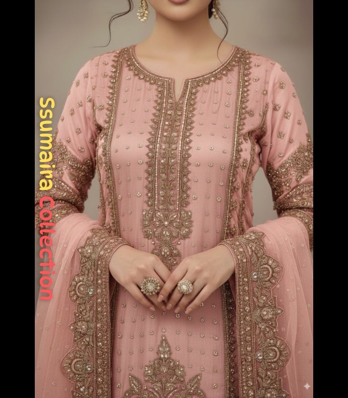Sharara Rosa 2025 con Cristales, Dupatta de Organza, Adornos de Perlas y Corte de Dama en Chifón para Bodas y Graduaciones