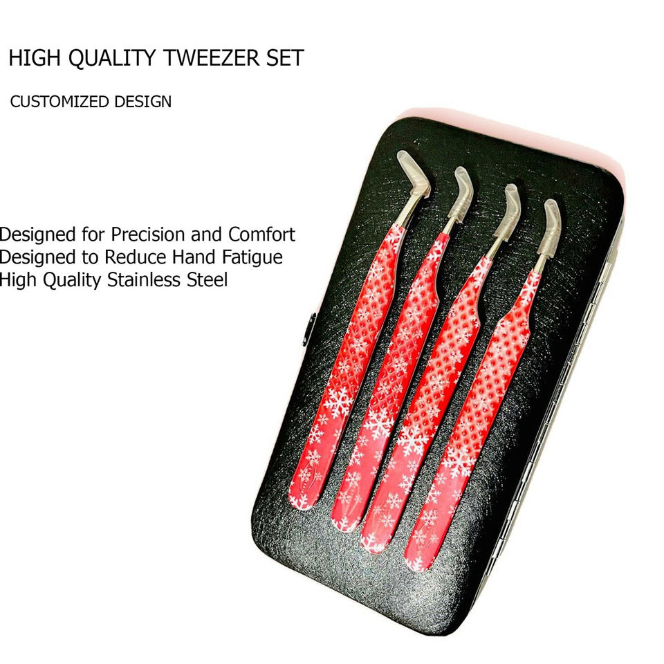 Juego de pinzas para pestañas, juego de pinzas de alta calidad, diseño personalizado, Color rosa, OEM