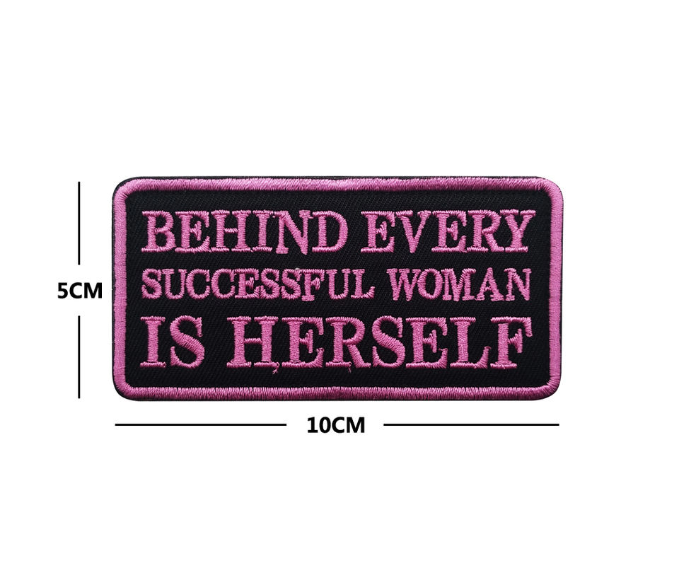 Parches de perro de servicio de color rosa "DETRÁS DE CADA MUJER EXITOSA ESTÁ BORDADA" Parche de letras para tela de mascotas