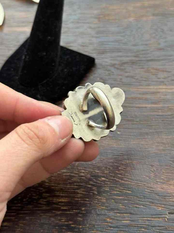 Anillo de plata de ley de concha rosa de artesanos Navajo, joyería única de tamaño 7 con artesanía tradicional