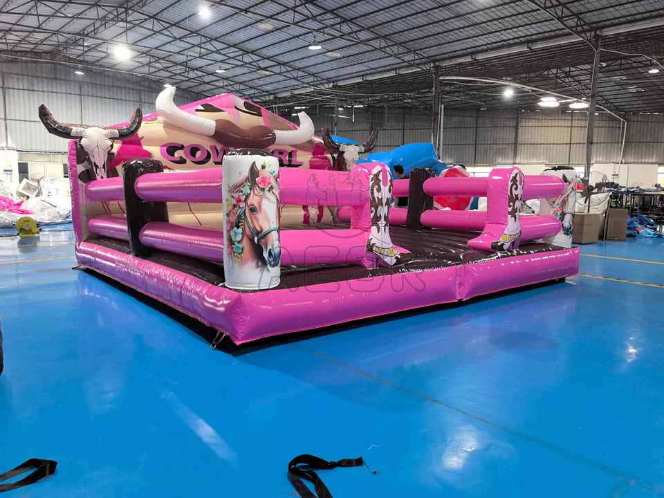 Toro Mecánico Inflable Rosa para Fiestas y Eventos, de Grado Comercial, con Colchón de PVC