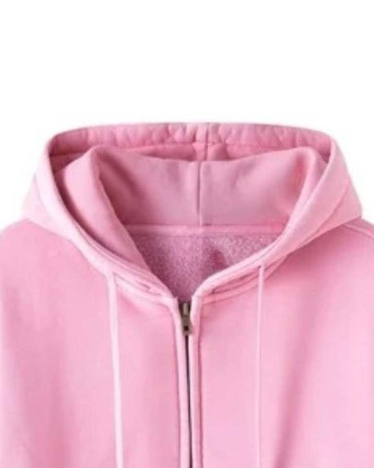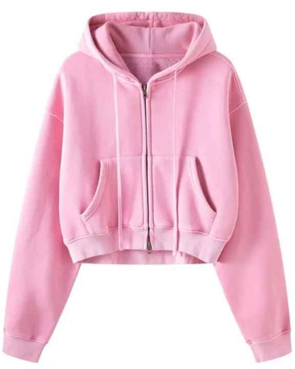 Sudadera Corta con Capucha y Cremallera Rosa para Mujer, Sudadera con Capucha de Forro Polar, Ropa Casual de Calle, Chaqueta Corta, Ropa de Invierno