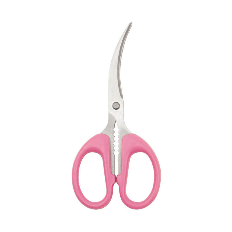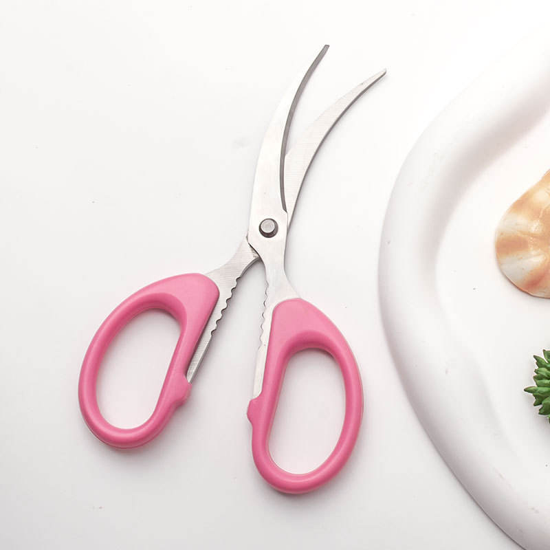 Pink Curved Blade Stainless Steel Scissors For Crayfish And Crab Back Cutting Household Seafood Tools 420 Steel Elbow Shape