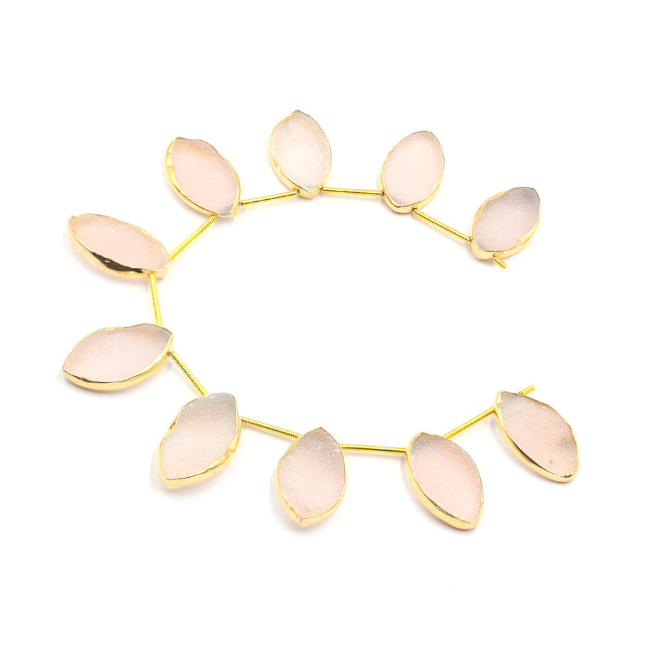 Product Name:Pink Druzy Silver Bezel Gold Plated Top Side Drilled 10 Beads Strand