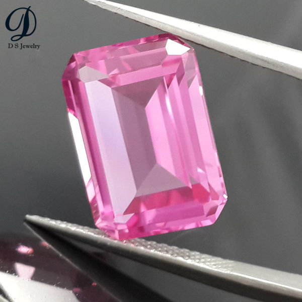 Piedras Preciosas de Corindón Sintético, Corte Esmeralda Rosa, Rubí Rosa