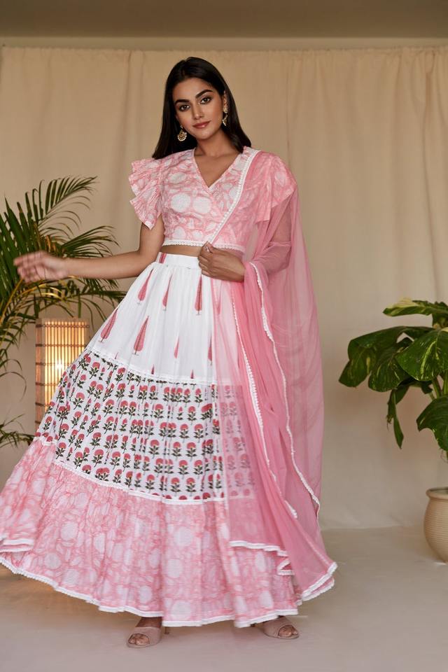 Conjunto de Lehenga con Estampado Floral Rosa de Moda India de Calidad, Kurti y Pantalones para Mujer, Vestido de Fabricante Indio