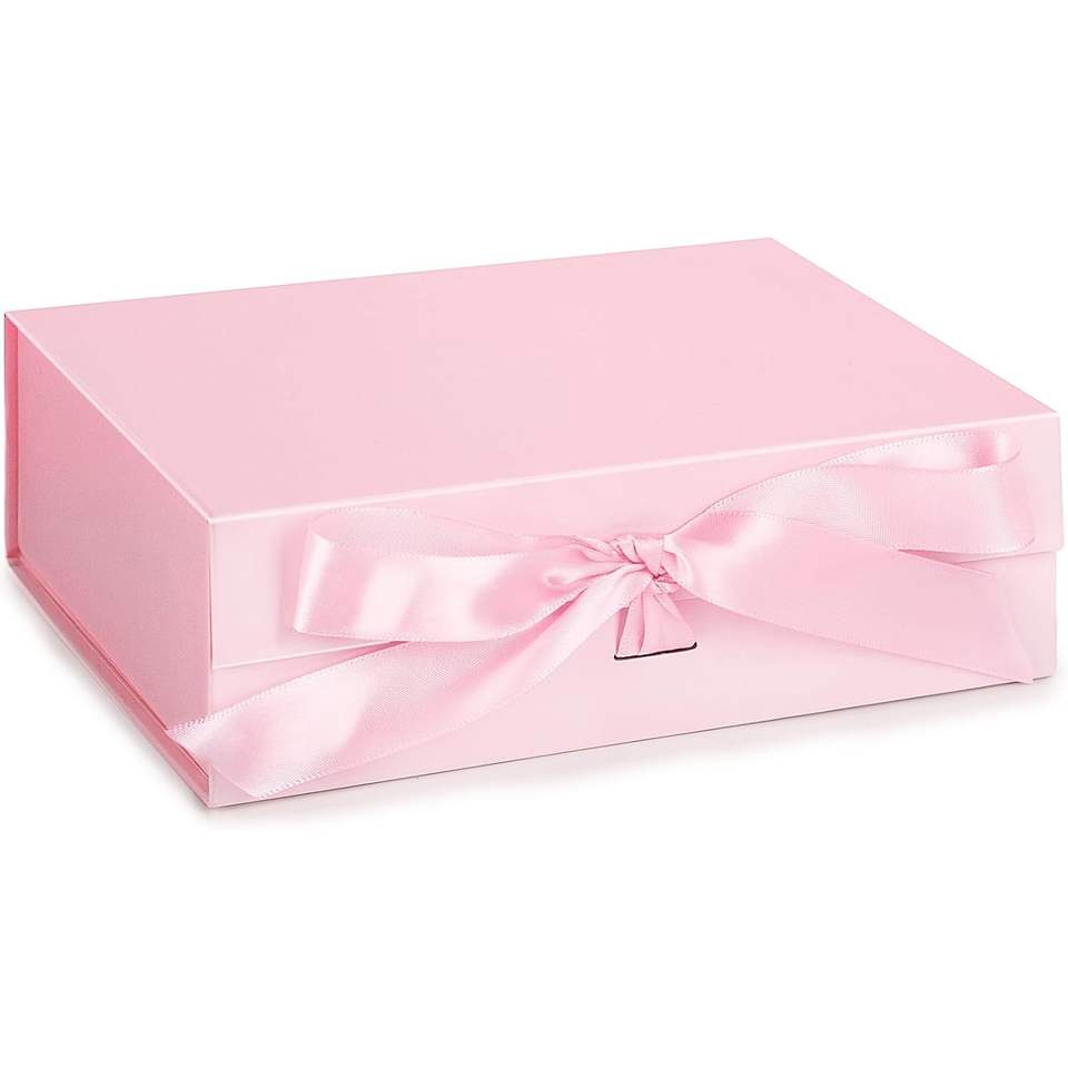 Caja de regalo plegable rosa con tapa, cierre magnético y cinta para regalos de novia, bodas, cumpleaños, Día de la Madre