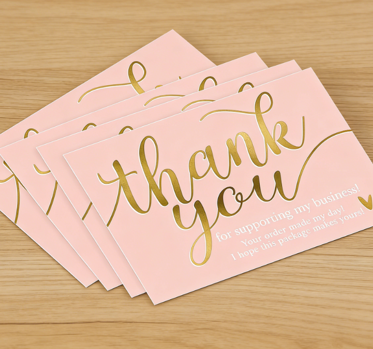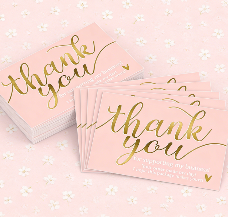 Tarjeta de Agradecimiento de Cartón Compuesto con Película en Relieve Chapada en Oro Rosa, Tarjeta de Apoyo, Tarjeta de Regalo de Hospitalidad, Tarjeta de Bendición