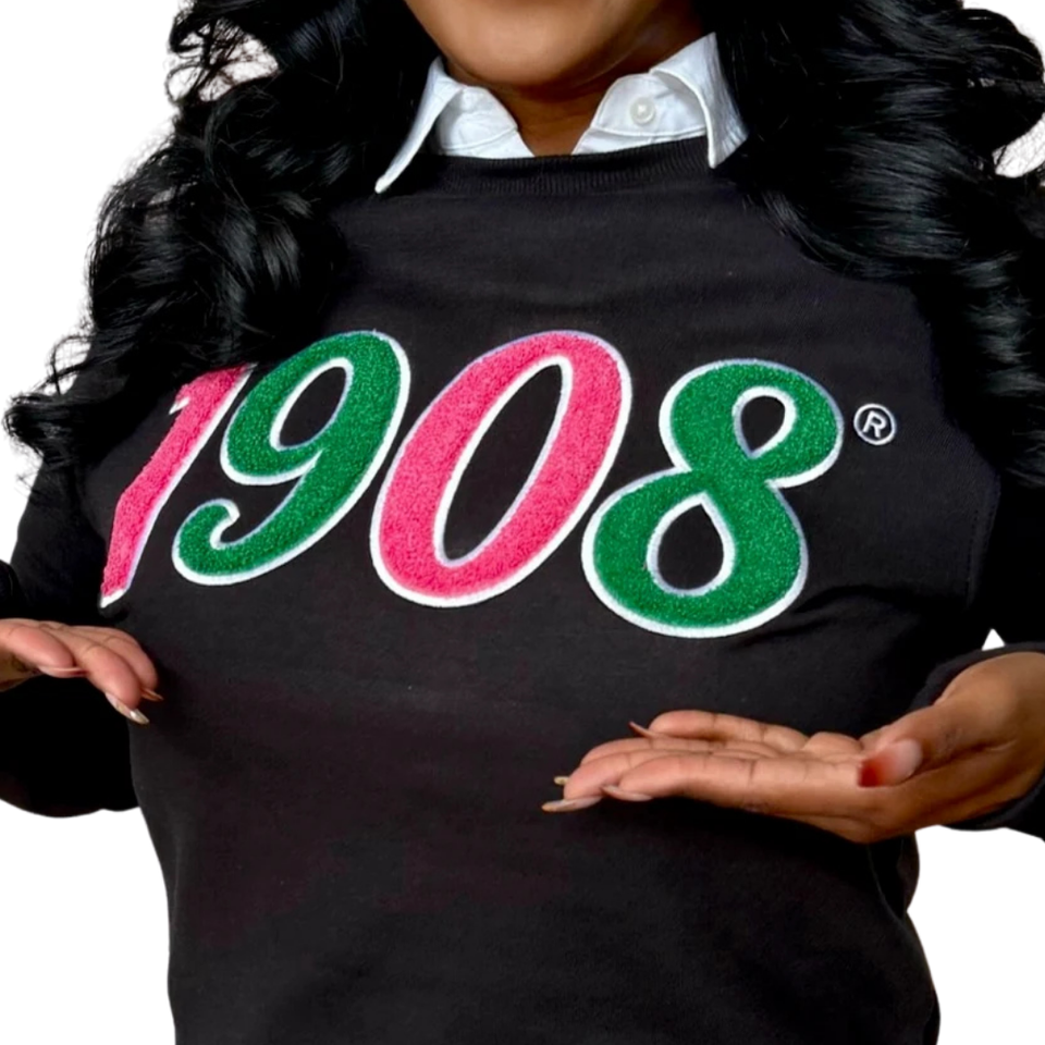 Rosa verde 1908 Chenille sudadera negro pulóver suave algodón Premium hermandad griega bordado cuello redondo ropa