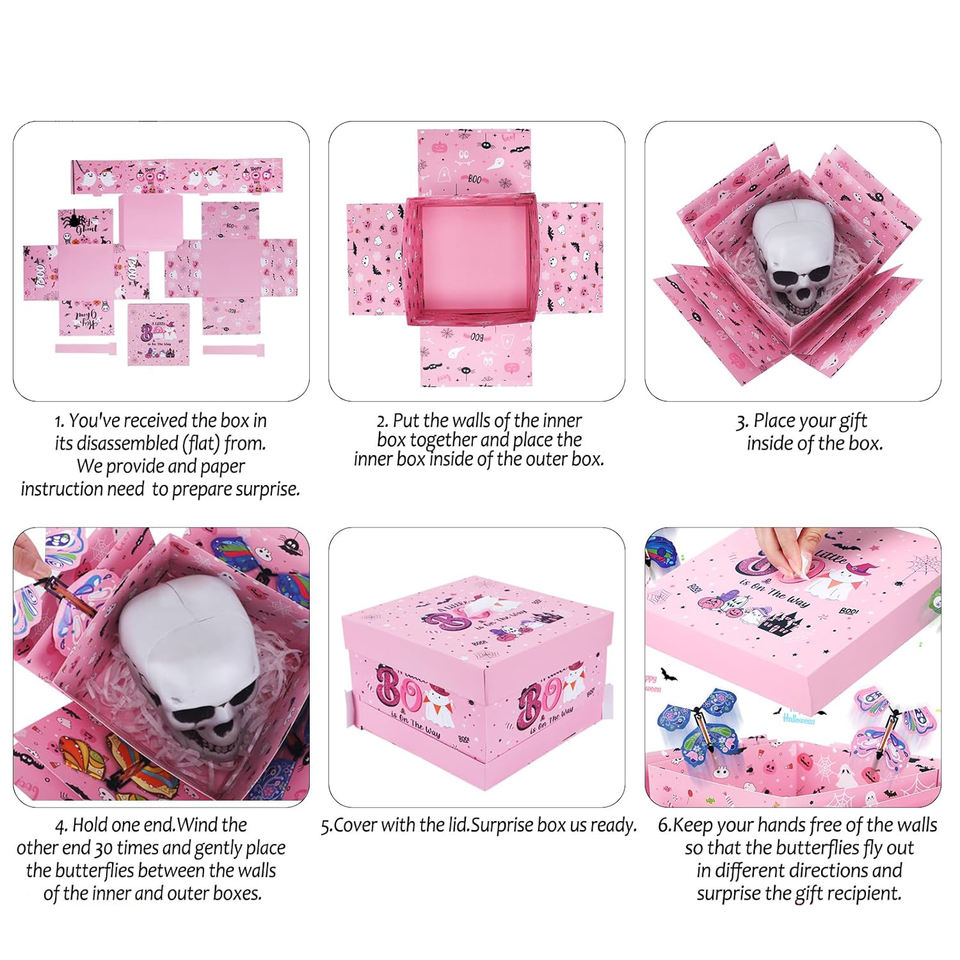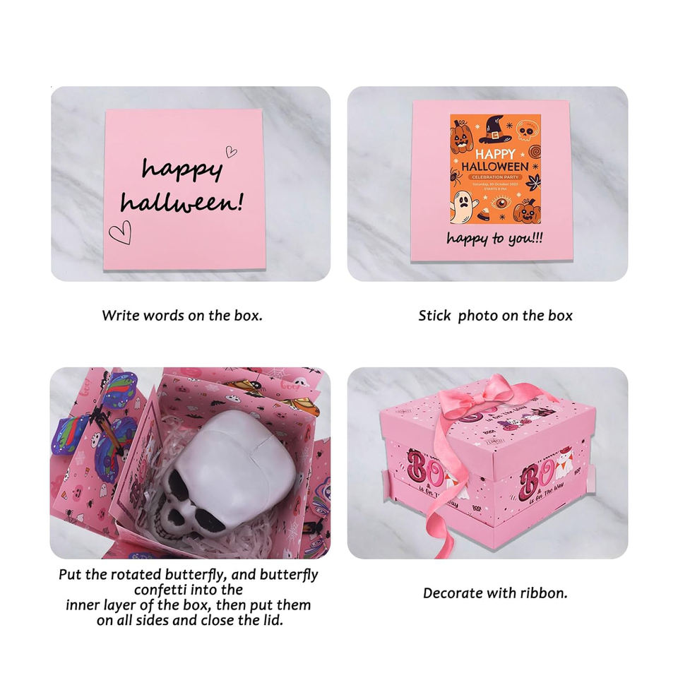 Caja de regalo sorpresa explosiva única de Halloween Rosa Caja de mariposa voladora sorpresa Caja de regalo explosiva