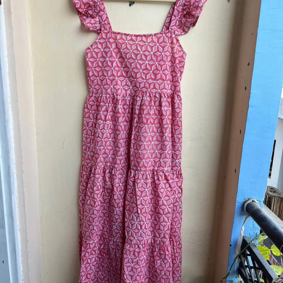 Vestido de algodón rosa con estampado floral bohemio y manga casquillo, superventas 2026 para mujer
