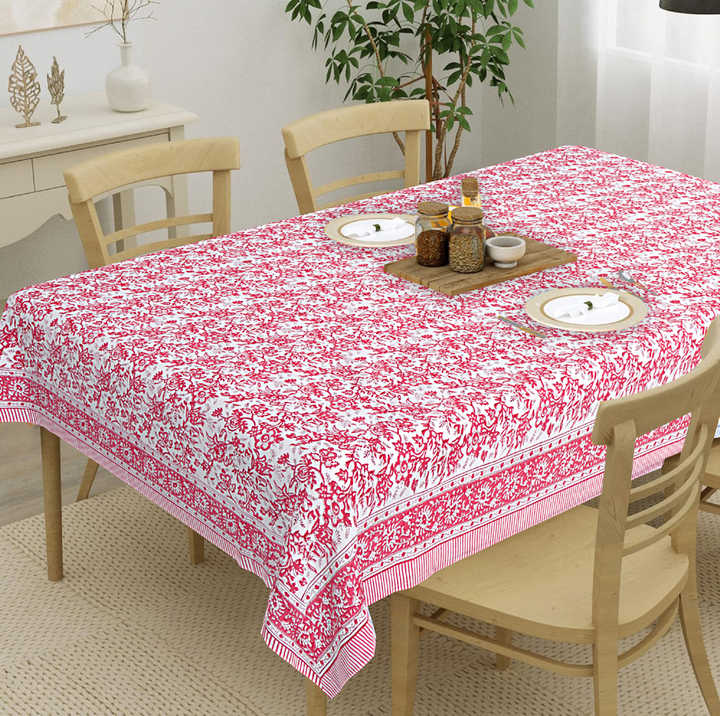 Mantel de Algodón Puro Hecho a Mano Hermoso Azul Rosa Indio Granja Boda Decorativo Lino Bloque de Mano Impreso Mesa Hecha A Mano
