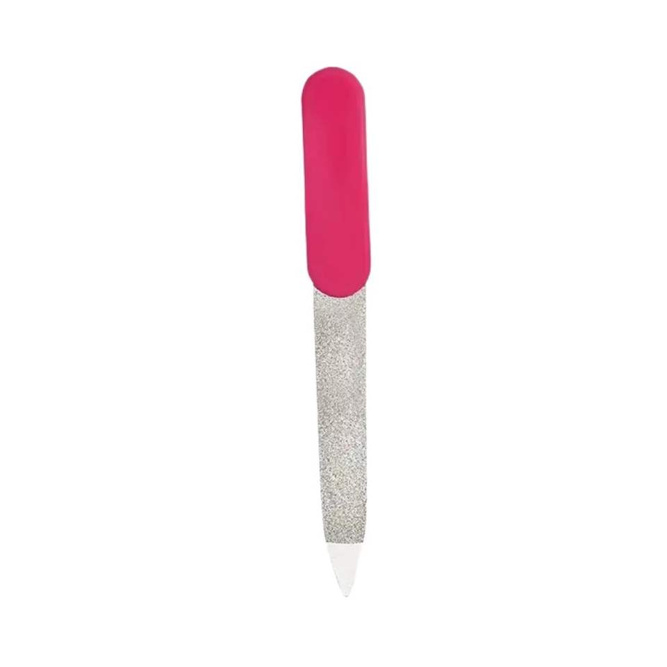 Lima de Uñas Metálica con Mango Rosa y Punta Puntiaguda para Limpieza y Tapa Protectora, Kit de Manicura de Acero Inoxidable para Uso Doméstico