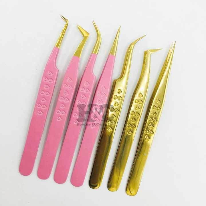 Pinzas de extensión de pestañas para el hogar con diseño de corazón rosa, pinzas de acero inoxidable de visón de Color, pinzas de pestañas postizas sostenibles con logotipo