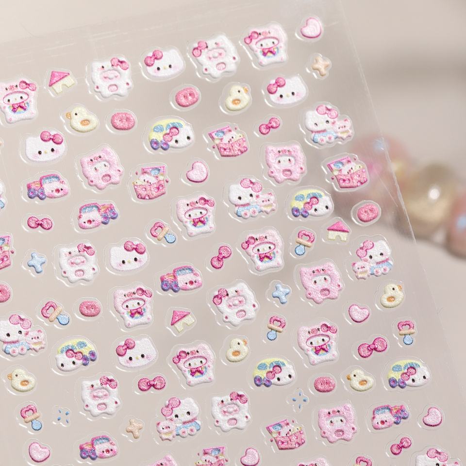 Pink Hello Kitty 5D Relief Plástico no tóxico 3D DIY Nail Art Stickers personalizables con aplicación de belleza de gran oferta