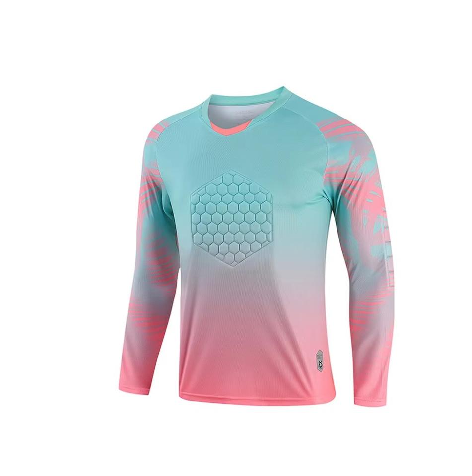 Rosa de alta calidad nuevo diseño de manga larga adulto juego de entrenamiento de fútbol portero Jersey hombres portería uniformes al por mayor