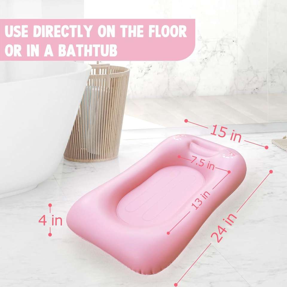 Alfombrilla de Baño Inflable Rosa para Bebé, Plegable y Portátil, para Viajes y Uso en el Hogar