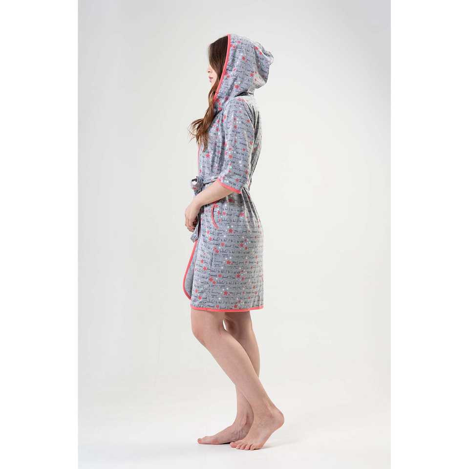 Bata de Franela para Mujer Pink Line, Gris Melange, con Capucha, Suave, Informal, de Manga Larga