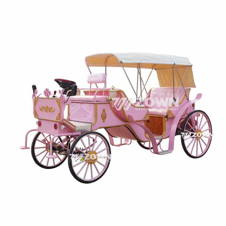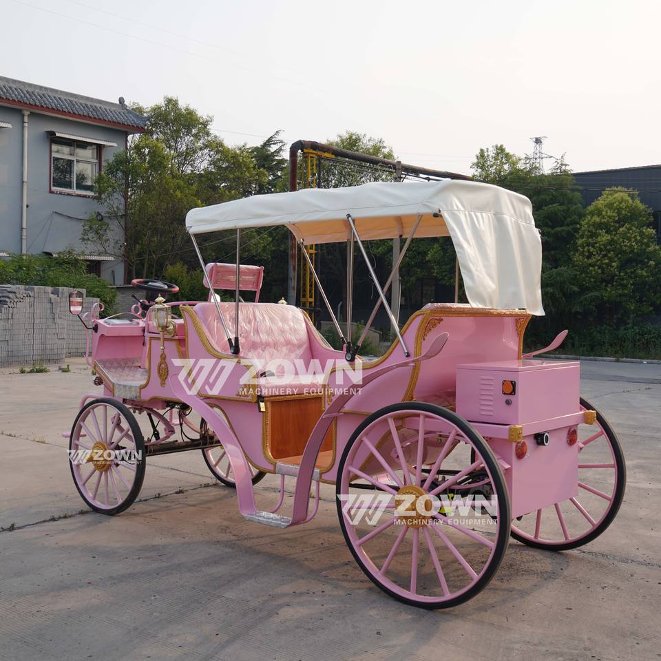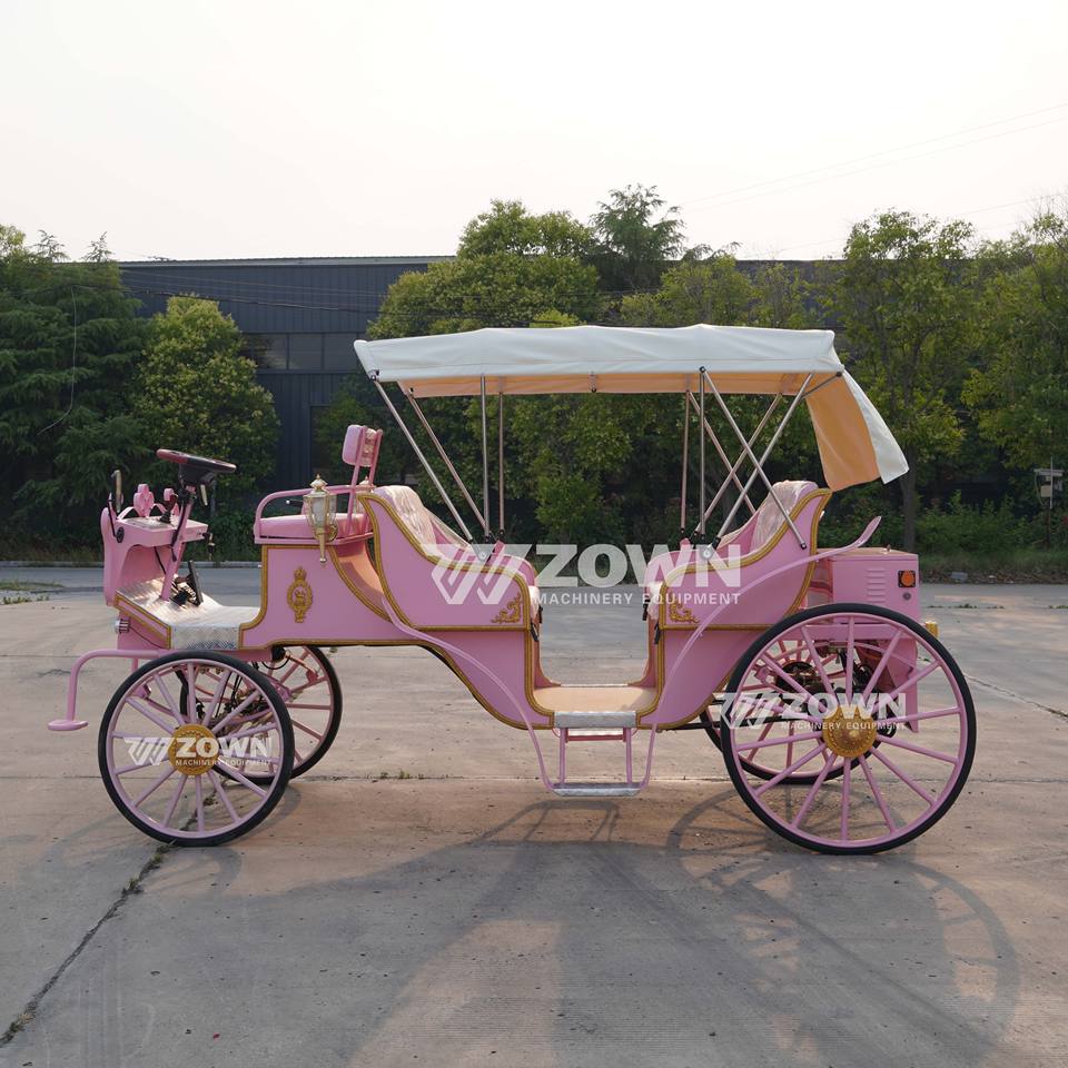 Carruaje de caballos eléctrico de lujo rosa para bodas con 4 ruedas, 4-6 asientos, garantía de 2 años para Royal Sightseeing