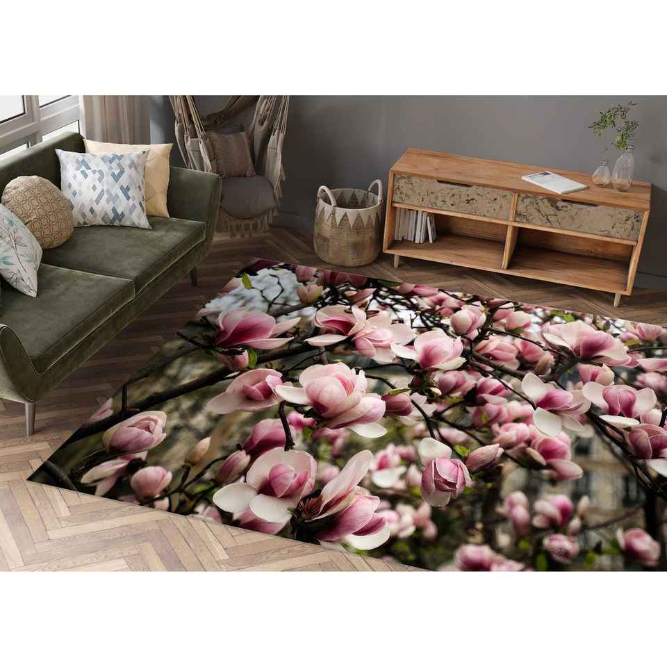 Alfombra Rosa Magnolia, Alfombras con Flores Rosas, Alfombra Rosa, Alfombras Botánicas, Alfombra Delgada No Tejida