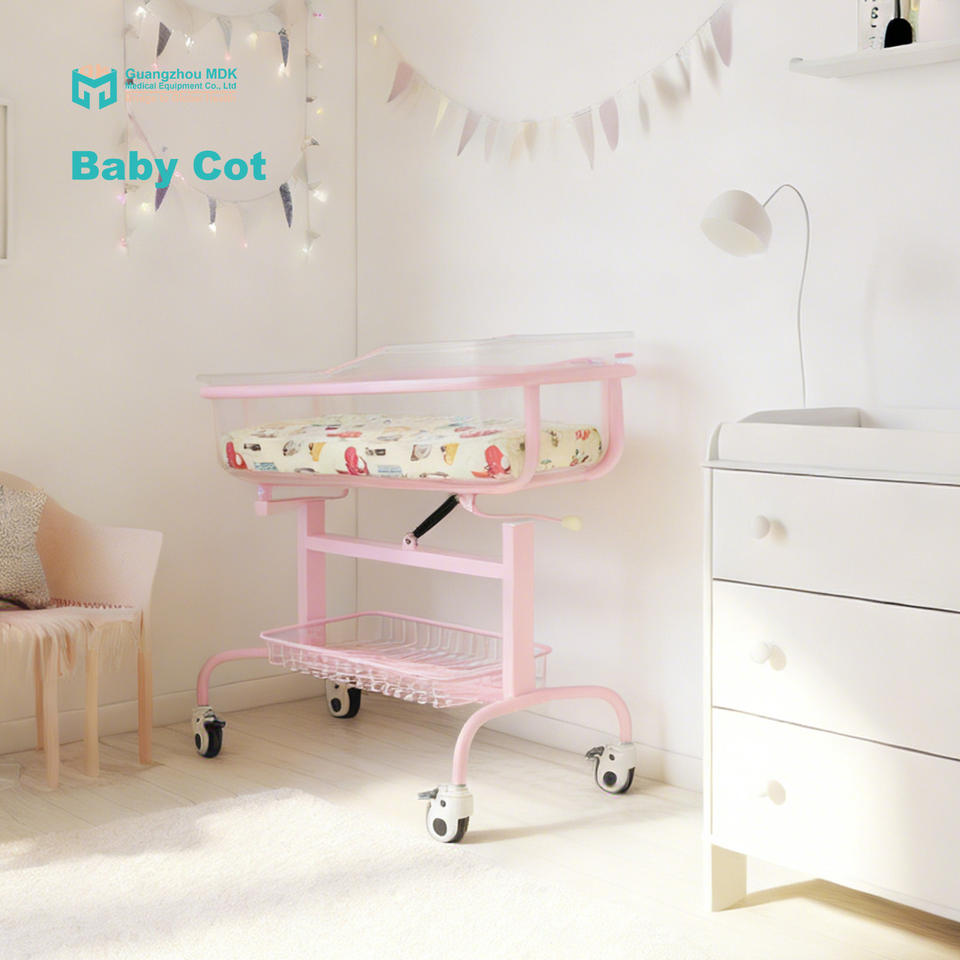 Cuna de Hospital con Marco Metálico Rosa, Cesta de Almacenamiento, Inclinación Anti-Reflujo, Cuna Transparente, Cama para Cuidado en el Hogar, 3 Años para Recién Nacidos