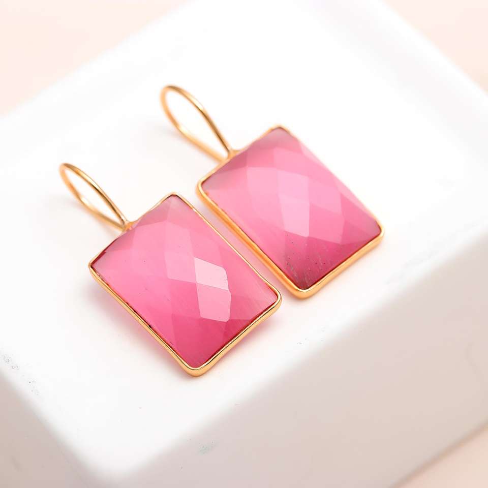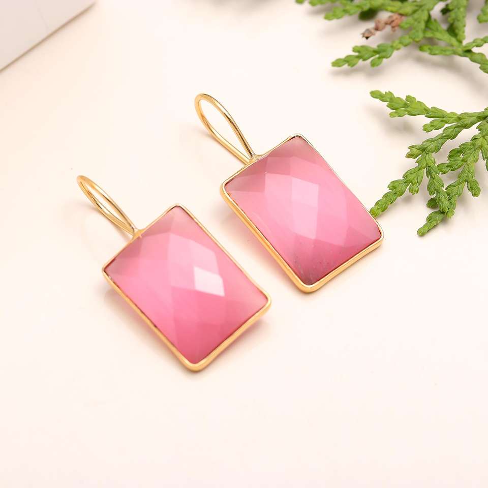 Pendientes Monalisa Rosa Forma rectangular Corte facetado Hecho a mano Piedra preciosa Rosa Pendientes Monalisa chapados en oro
