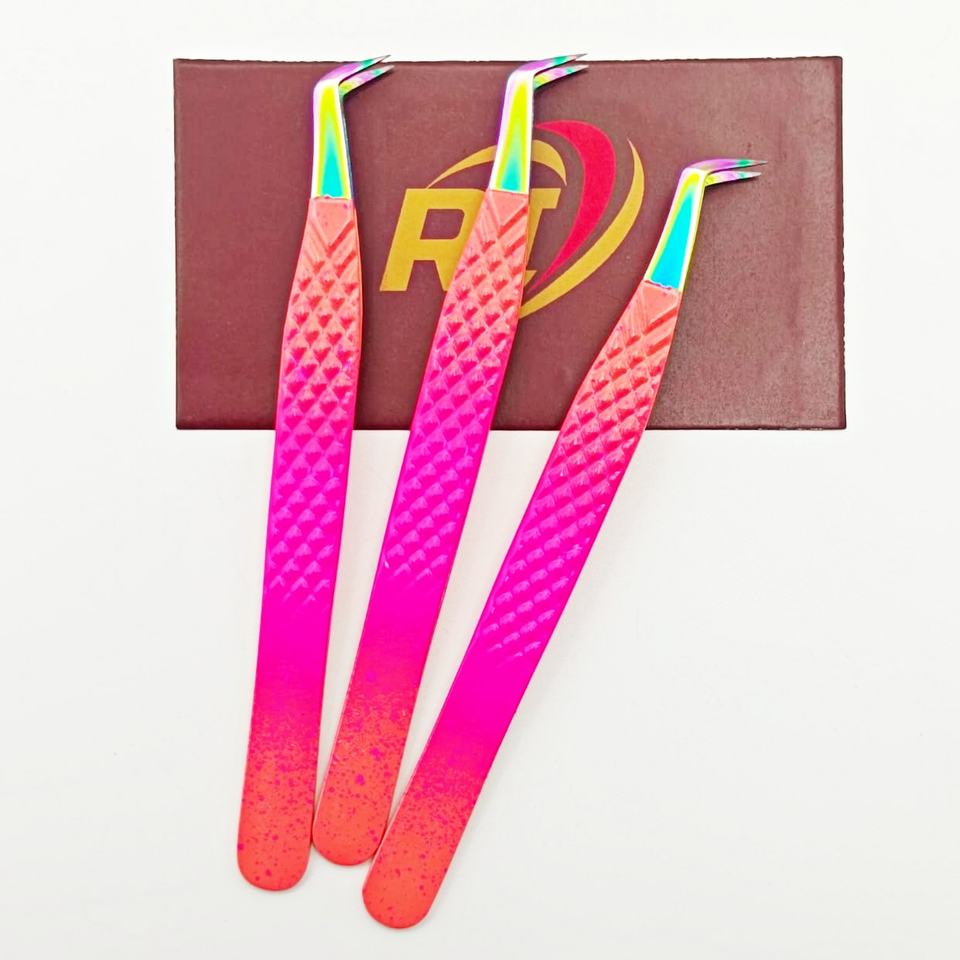 Pinzas de extensión de pestañas de acero inoxidable Ombre Rosa profesional internacional Revamp para mega pestañas clásicas de 90/75 grados