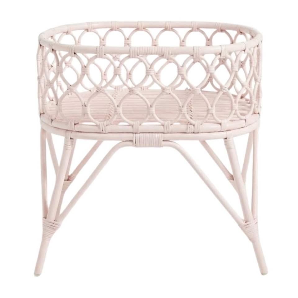 Nombre del producto:Cuna de muñecas de ratán natural pintado de rosa, duradera cama de mimbre para muñecas de bebé