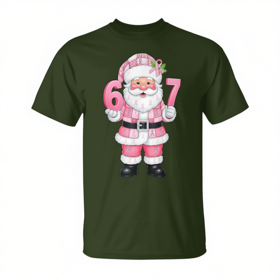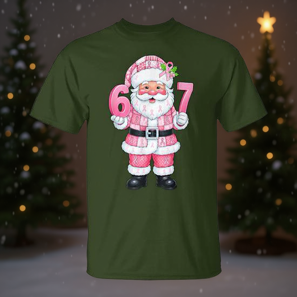 Camiseta rosa con estampado de patchwork de Papá Noel para concienciación sobre el cáncer de mama, Navidad 67