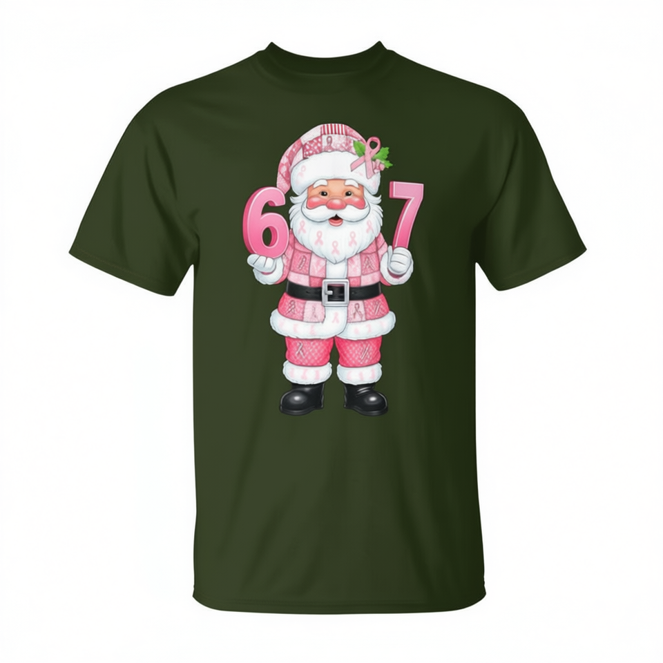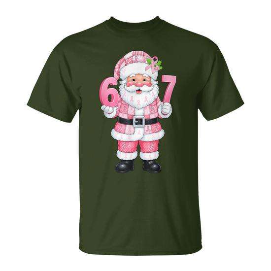 Camiseta rosa con estampado de patchwork de Papá Noel para concienciación sobre el cáncer de mama, Navidad 67