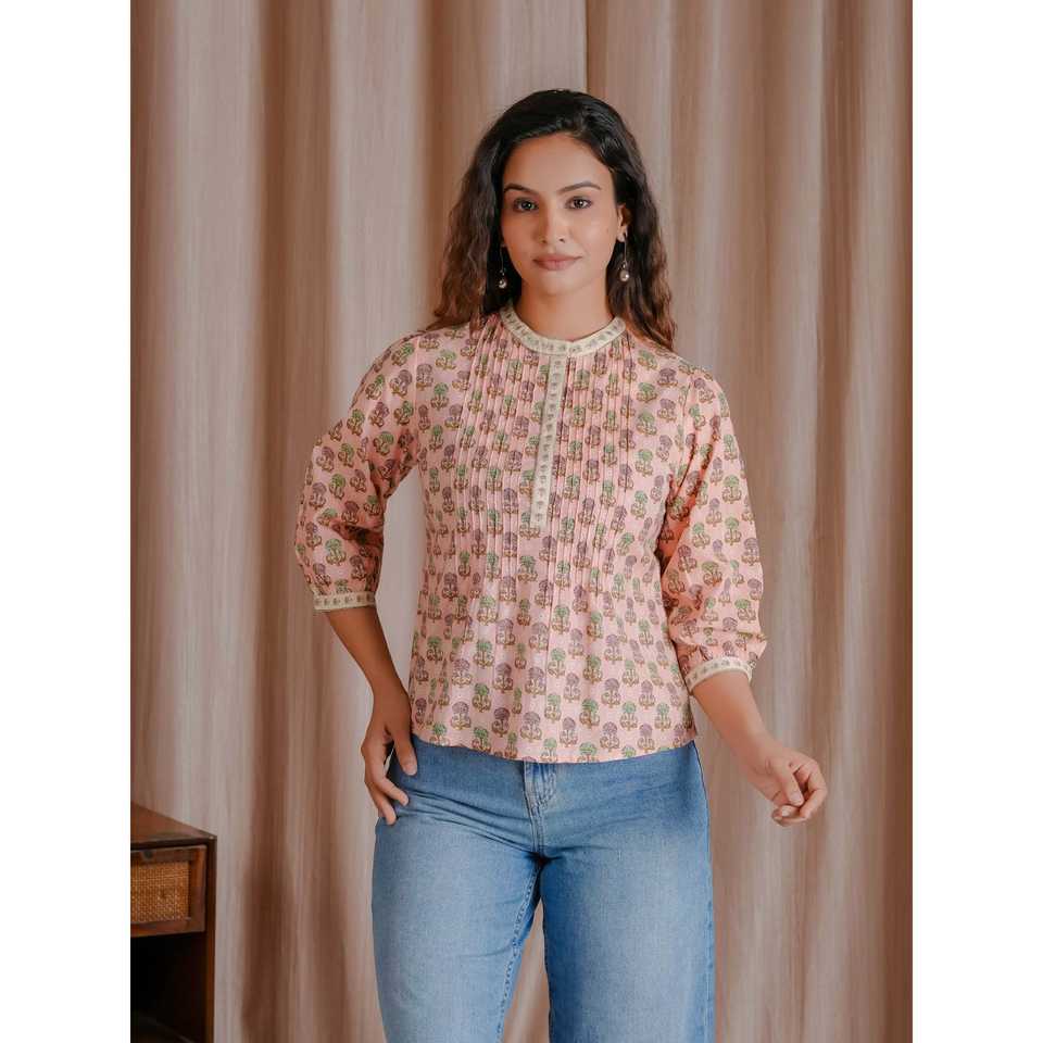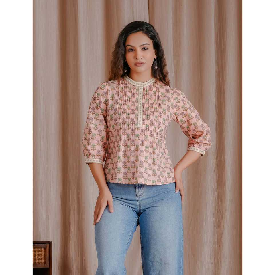 Top Corto de Algodón Estilo Pintux Rosa con Decoración Fruncida