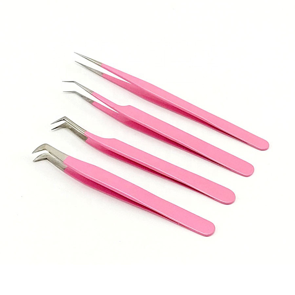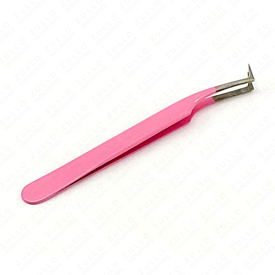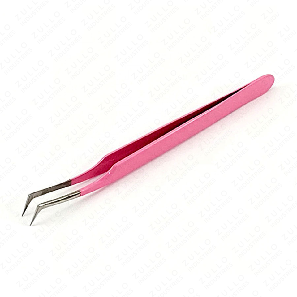 Pinzas para Extensión de Pestañas en Forma de L con Recubrimiento de Polvo Rosa, Acero Inoxidable con Punta Plateada, Logotipo Personalizado, Herramienta de Precisión para Pestañas