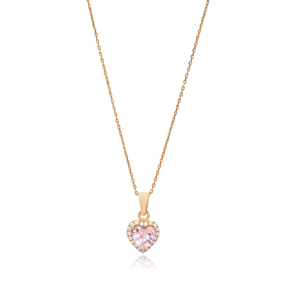Cuarzo Rosa forma de corazón piedra de circón cúbico elegante encanto collar 925 joyería de plata esterlina