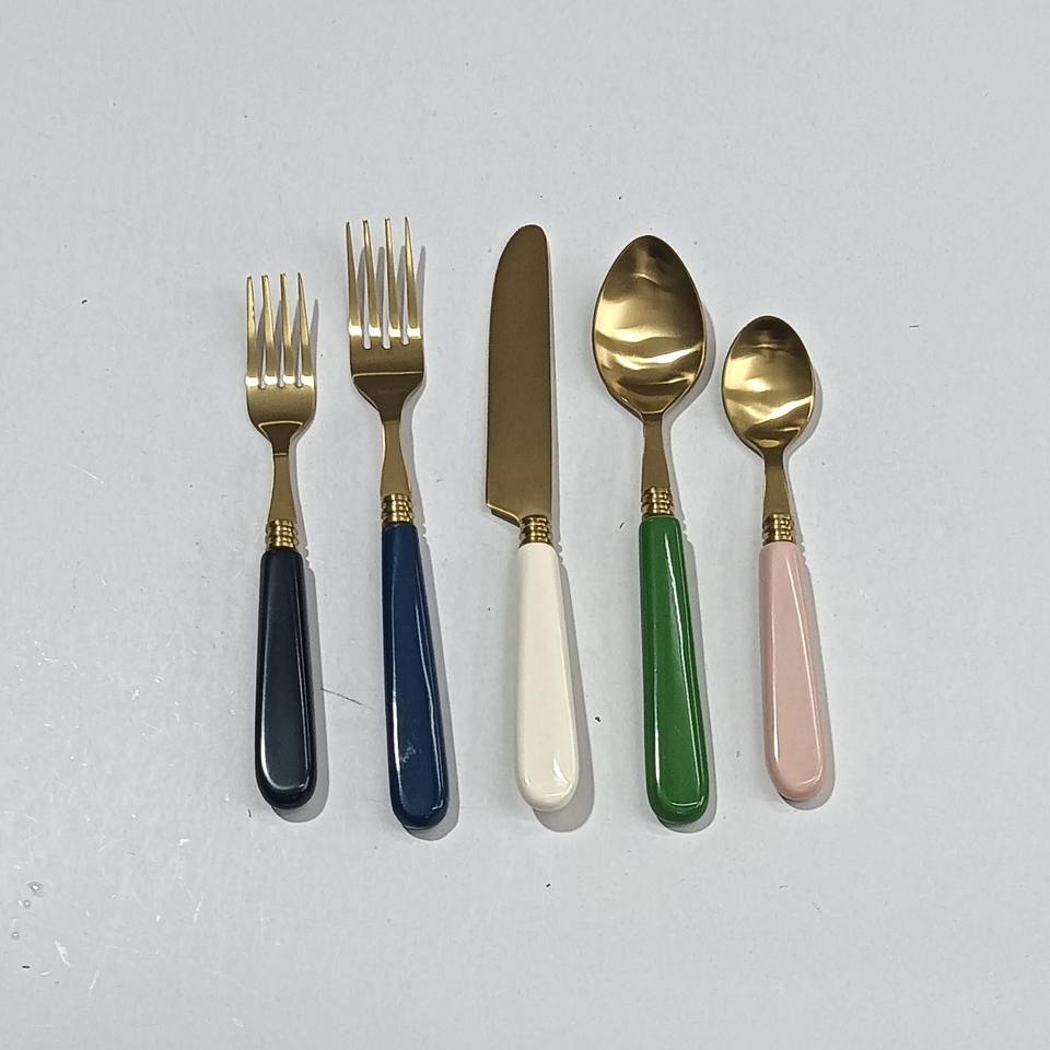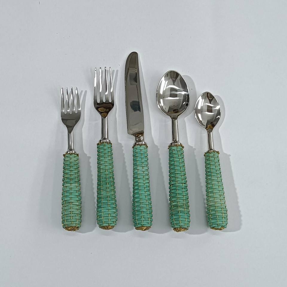 Juego de Cubiertos de Acero Inoxidable para Restaurante, con Mango de Ratán Rosa y Acabado en Oro PVD, Cuchara y Tenedor Hechos a Mano para Bodas